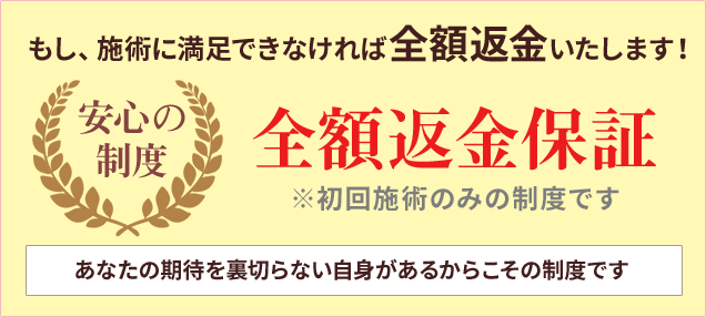 初めて当院にお越し頂き、2回目に来院されるまでに「私には合わない」「効果を感じない」という場合、初回に頂いた料金を全額返金いたします。